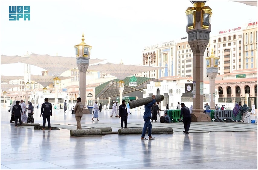 سعودی خبررساں ادارے “ایس پی اے” کے مطابق ان میں 14 ہزار سے زیادہ صحنوں، 6 ہزار 150 راہداریوں اور 5 ہزار 500 قالین مسجد کی چھت پر بچھائے گئے ہیں۔