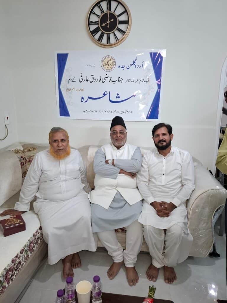 عروس بحر احمر شہر جدہ میں ادبی تنظیم اردو گلبن نے عمرہ اور حج کے سفر پر جدہ انے والے شعراء ادباء اور صحافیوں کے استقبال اور پذیرائی کی اپنی روایت کو برقرار رکھا ہے۔ اسی سلسلے می حیدرآباد کے اپنے وقت کے مشہور شاعر وادیب قاضی انجم عارفی کے فرزند ارجمند قاضی فاروق عارفی کے اعزاز میں ایک نجی شعری محفل جمعرات کو منعقد کی گئ۔